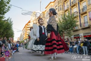 Nuestros gigantes bailaron con elegancia y una sincronización excelente por el trazado urbano de Miranda de Ebro, levantando los aplausos espontáneos de los vecinos burgaleses en cada cruce de calles. Por su parte, la sección de cabezudos realizó un desfile sobrio y muy cuidado, abriendo paso a la comitiva de las bandas de música con la compostura y el saber estar que exigen este tipo de festivales oficiales interprovinciales.