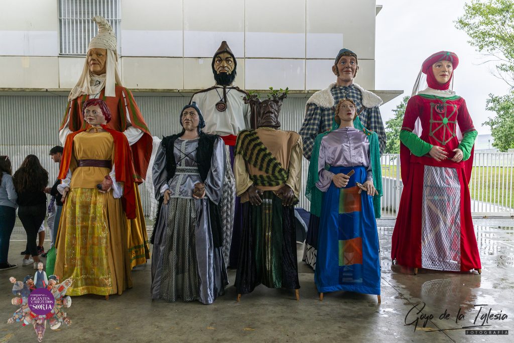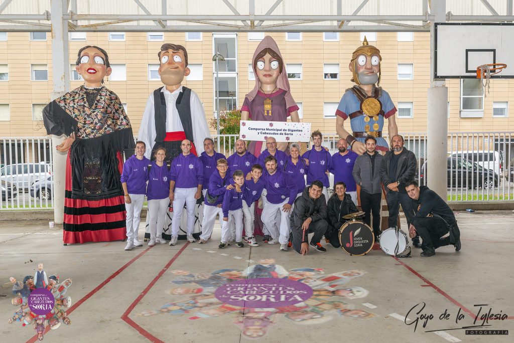 Para esta salida de la comparsa de Soria, desplazamos a nuestras cuatro figuras principales para representar con orgullo la historia y el folclore de nuestra ciudad. Entre ellas desfilaron Retógenes y Nuane, nuestras imponentes figuras que encarnan el orgullo, la resistencia y el valor de los antiguos pobladores de Numancia, junto a Don Saturio y Doña Blanca, ataviados con el traje tradicional de piñorros y llevando el nombre de nuestro patrón y de la Virgen de la Blanca por bandera.