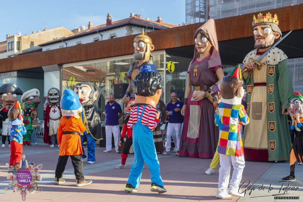 La música corrió a cargo de los Gaiteros Aires de Soria, quienes marcaron el compás y el ritmo de las figuras. Tanto niños como mayores pudieron reencontrarse con los gigantes, rompiendo la pausa de los meses anteriores y poniendo en valor el esfuerzo que realizan los giganteros y los músicos de la comparsa durante todo el año para mantener vivas las tradiciones locales.