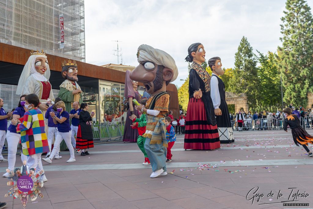 El fin de semana del 9 y 10 de octubre de 2021 fue una fecha de reencuentro muy especial para la Comparsa de Gigantes y Cabezudos con los vecinos de Soria. Ante la imposibilidad de celebrar los tradicionales pasacalles de las fiestas patronales de San Saturio debido a las normativas sanitarias vigentes en aquel momento, la asociación buscó una alternativa para no faltar a su cita anual con el público.